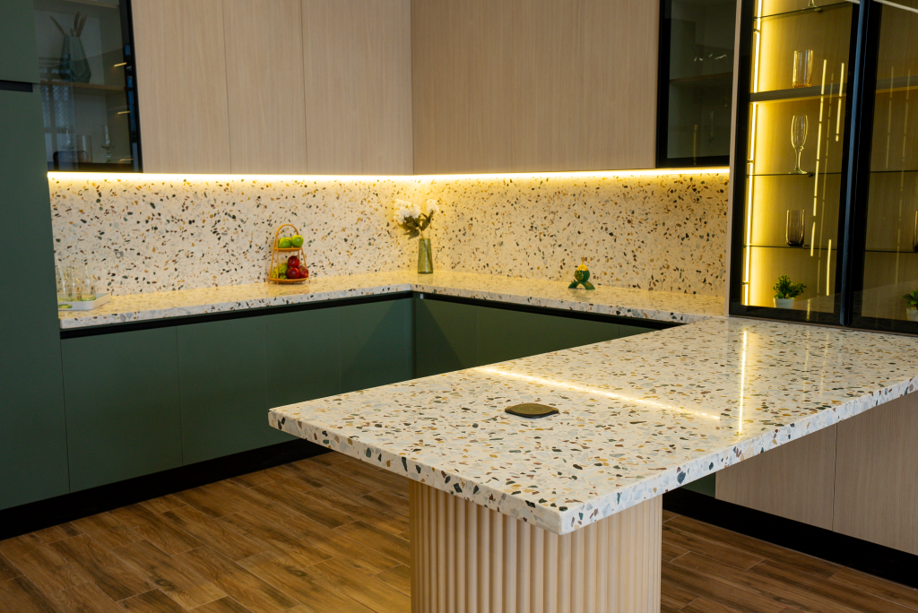 Value: Functionality, Modular Design, Optimized Storage, Premium Cabinetry (Matte Finish), Solid Surface Countertops, Natural Wood Accents